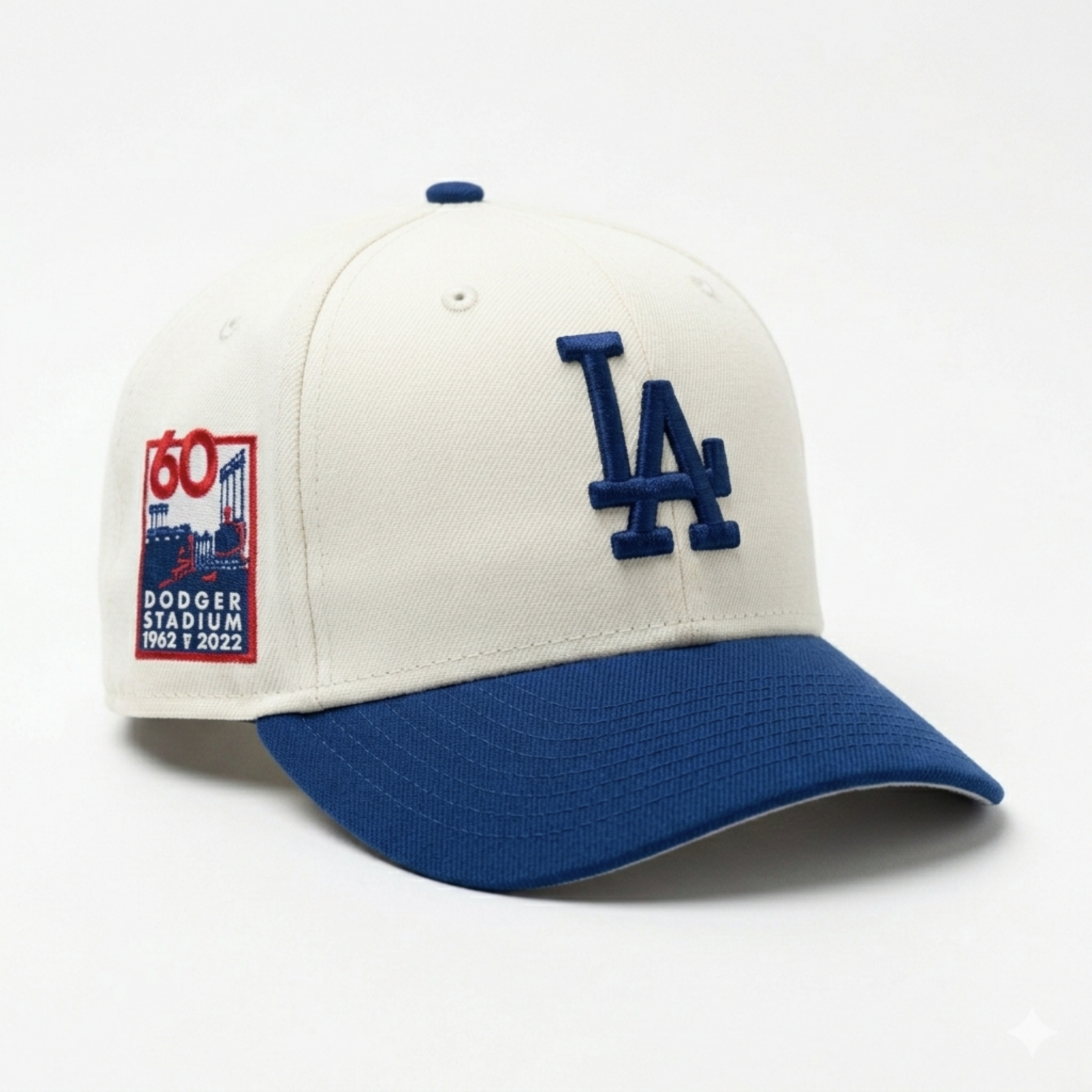 Celebrate Dodgers history with this Los Angeles Dodgers 60th Anniversary 9FORTY A-Frame cap. Featuring a clean cream crown with raised blue LA embroidery and a matching blue curved visor, this design delivers a classic team look. The standout detail is the Dodgers Stadium 60th Anniversary side patch (1962–2022), adding collectible value. Built with a structured A-Frame crown and adjustable snapback closure for a comfortable everyday fit.