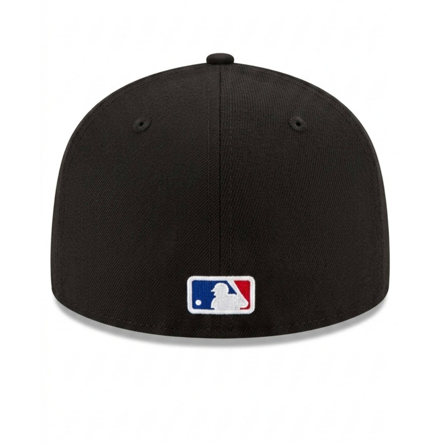 The New Era New York Yankees 59FIFTY Fitted Cap features a classic black crown with the iconic white NY logo embroidered on the front, delivering a clean and timeless MLB look. Built with the signature 59FIFTY structured crown and flat brim, this fitted cap provides a premium feel and authentic on-field style. Finished with the New Era flag on the side and the official MLB Batterman logo on the back, it's perfect for Yankees fans, collectors, and everyday streetwear outfits.