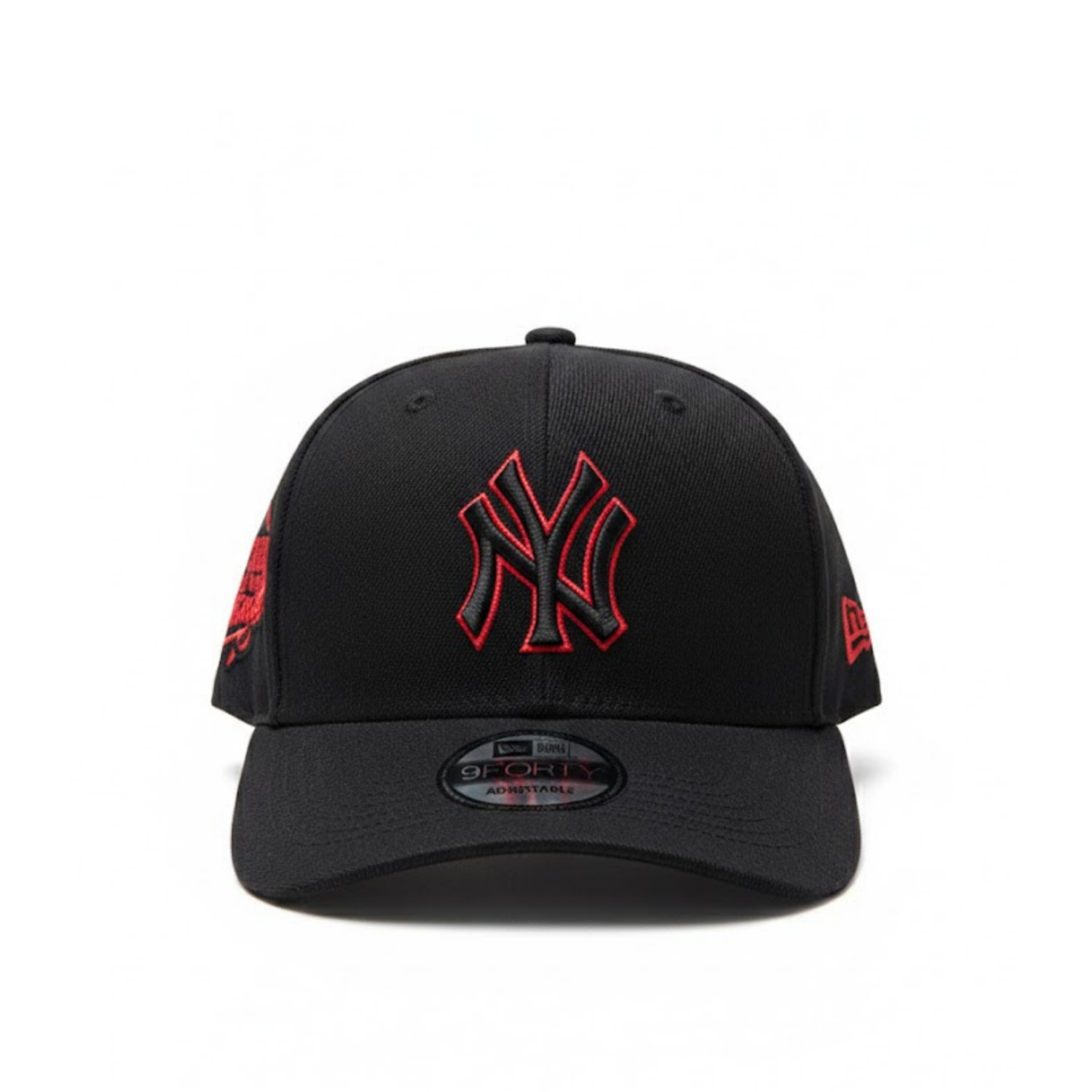 Step up your street style with this New York Yankees Black Red 9FORTY Adjustable Cap. Featuring a sleek black crown with red embroidered NY logo and matching red under visor, this cap delivers a bold and classic Yankees look.